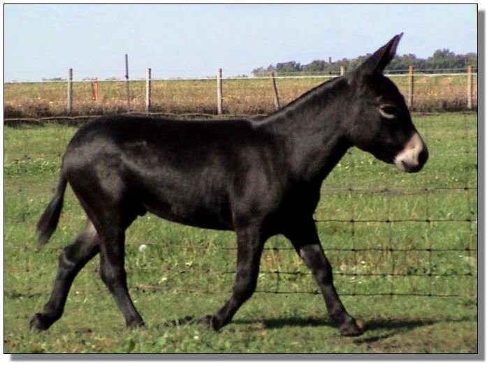 This is one of the quietest jacks on the farm. He was out on a breeding lease and got the job done without any fanfare. Pasture breeds and has had foals run with him. He is their favorite playmate. His color should work well into almost any breeding program. He has no visible shoulder stripe.