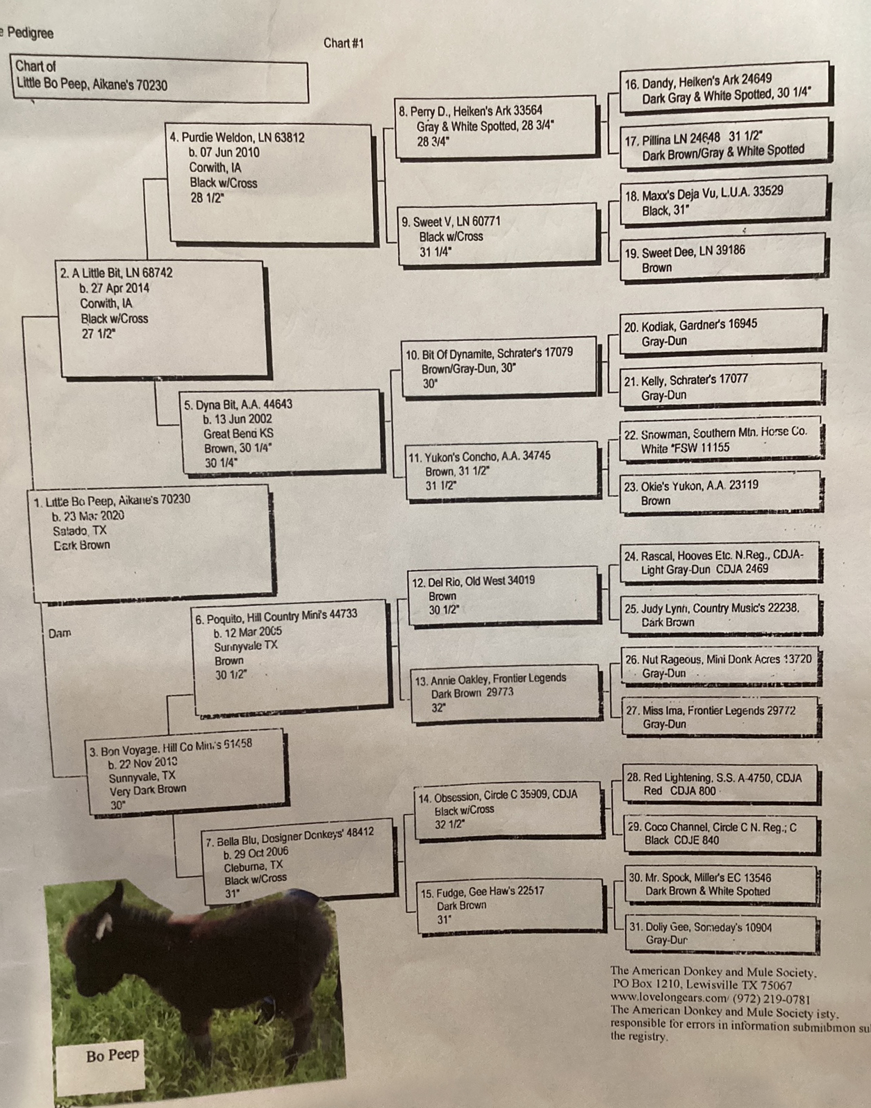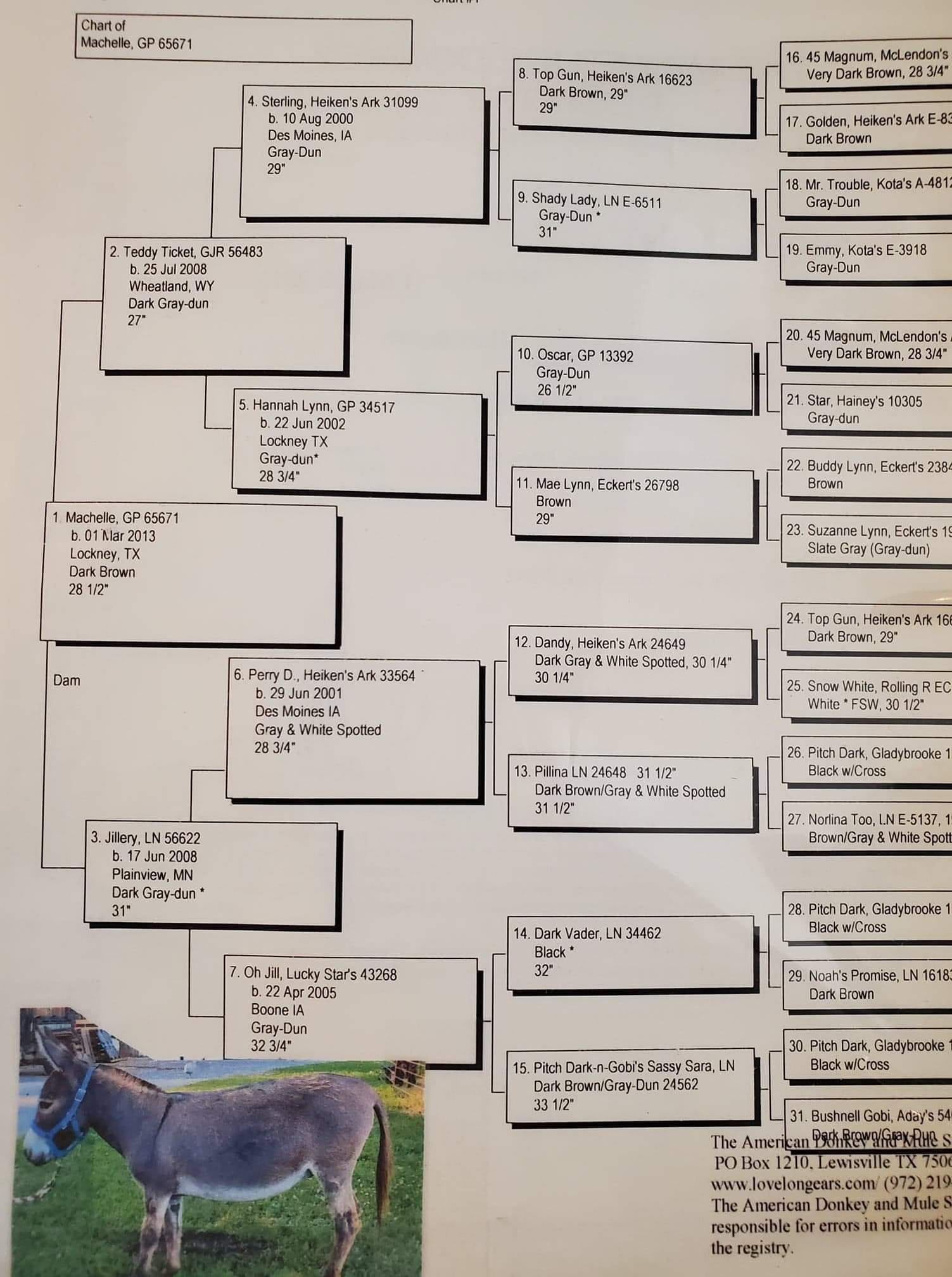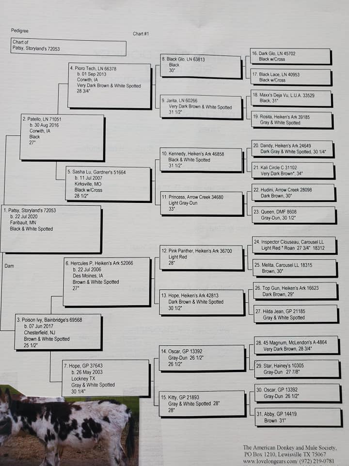 Nutella's pedigree also boasts donkeys such as N&D Lonestar Cowboys Baron (25¼"), Triple G Gidget (28½") and EA Doctor Donovan (28½") who I still own and he now lives the retired life!
