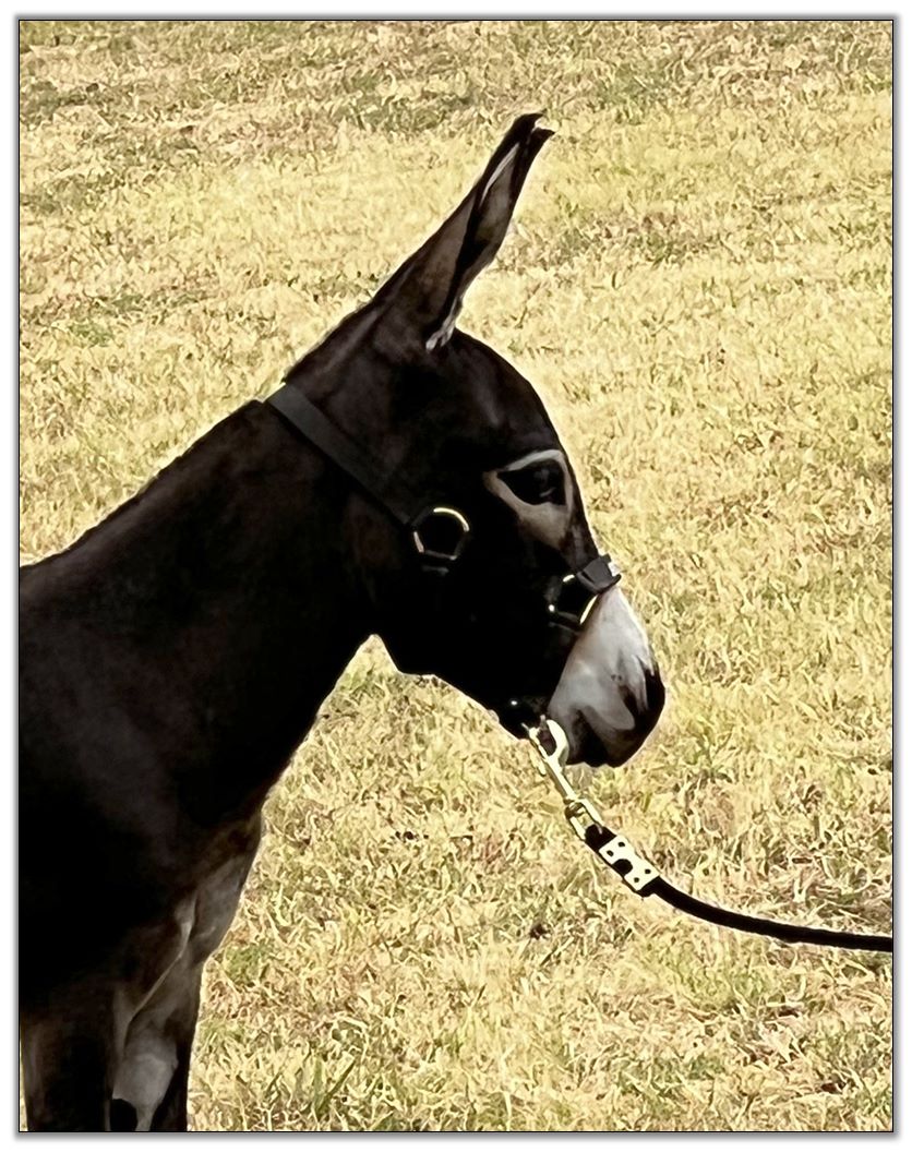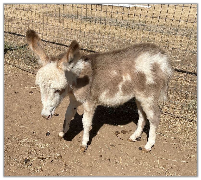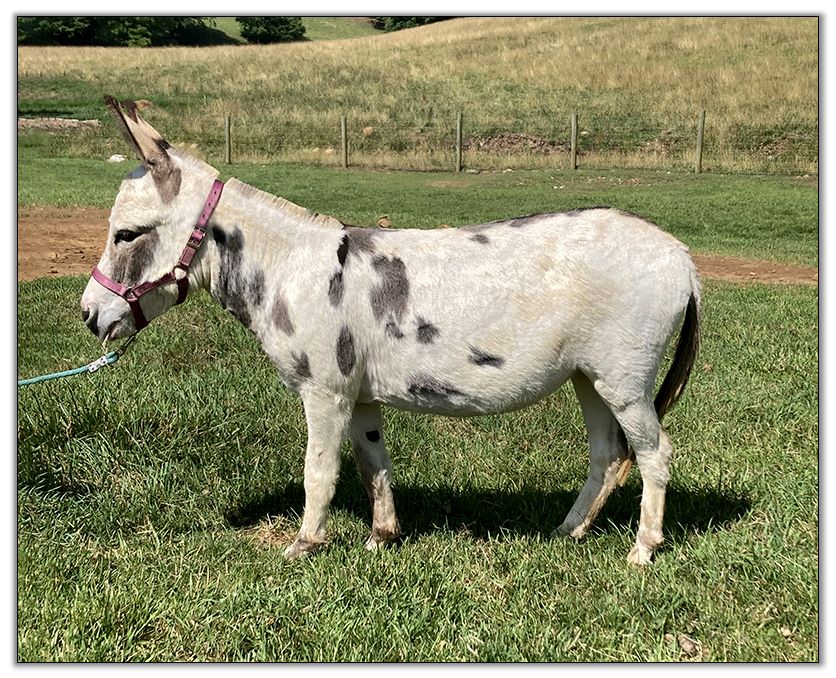 The 2nd of our Red jennies, Rose, offers a Red Roan color and it has clearly been passed down to her 2022 red-roan/white spotted jack foal. He is certainly considered as herd sire material. Rose is a very friendly, social jenny, and when crossed with a micro jack (like the sire of her 2022 foal), the size should be just what both micro and mini breeders desire.
