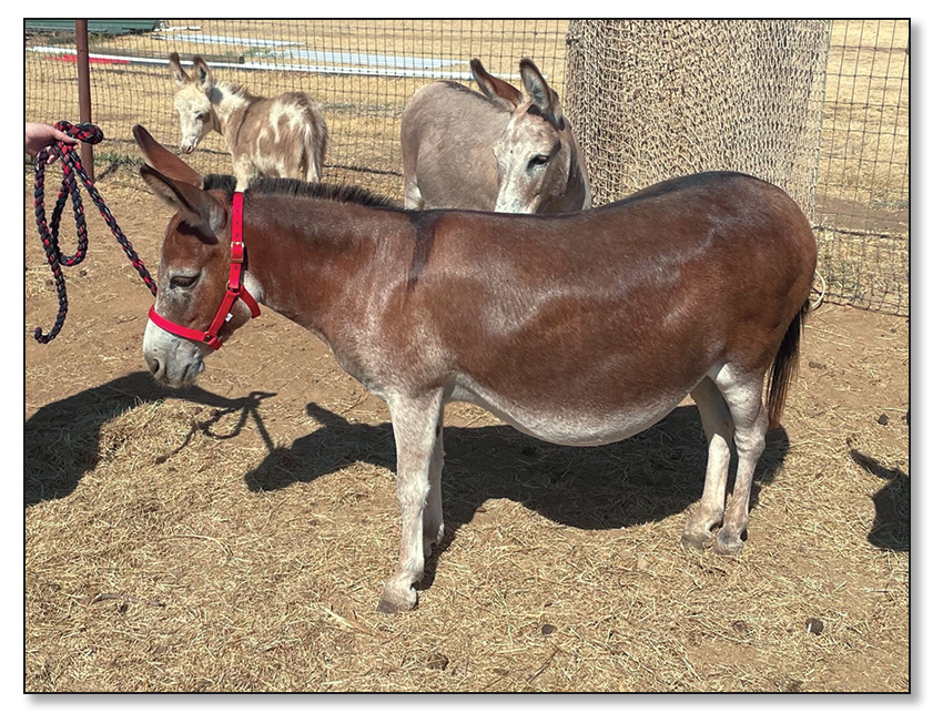 - An attractive Dark Red jenny, with highly sought after old bloodlines. She is confirmed in foal to our 27½" dark spot jack, LN Another Little Bit, for a December 2022 foal. Rosalina is currently an easy breeder & great mom. We have sold all her foals to date, so don't let the age fool you on this one. We are sure she will be a producer for a few more years to continue to pass on these old bloodlines. Vet letter verifying when confirmed in foal by ultrasound and due date.