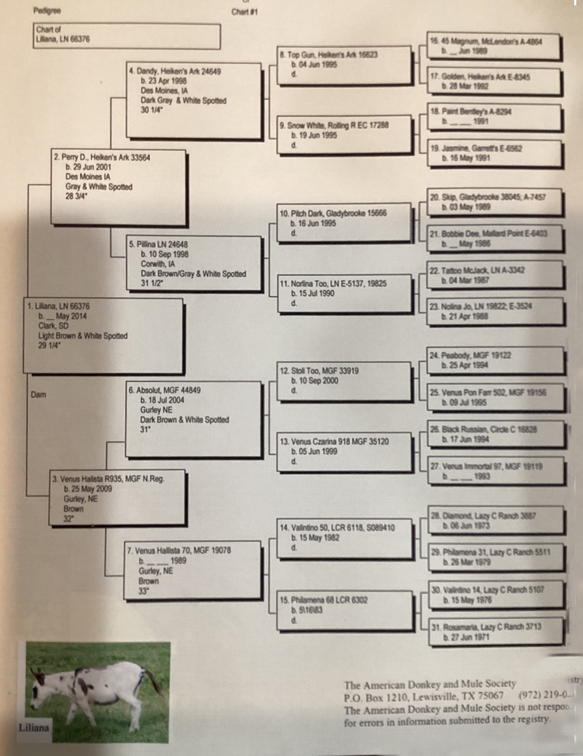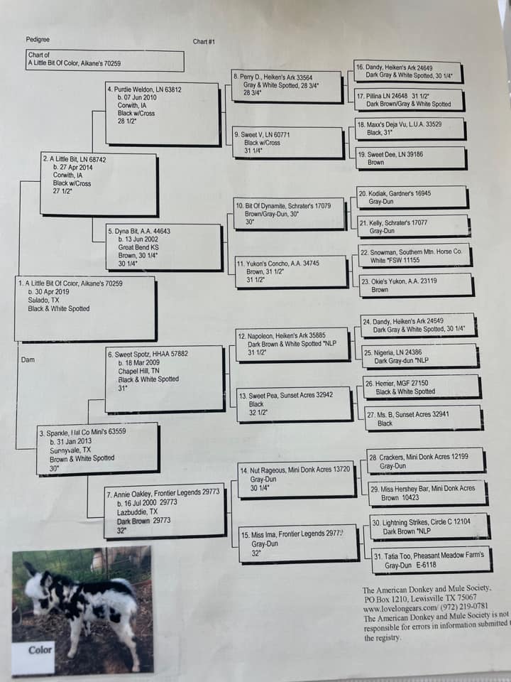 Nutella's pedigree also boasts donkeys such as N&D Lonestar Cowboys Baron (25¼"), Triple G Gidget (28½") and EA Doctor Donovan (28½") who I still own and he now lives the retired life!