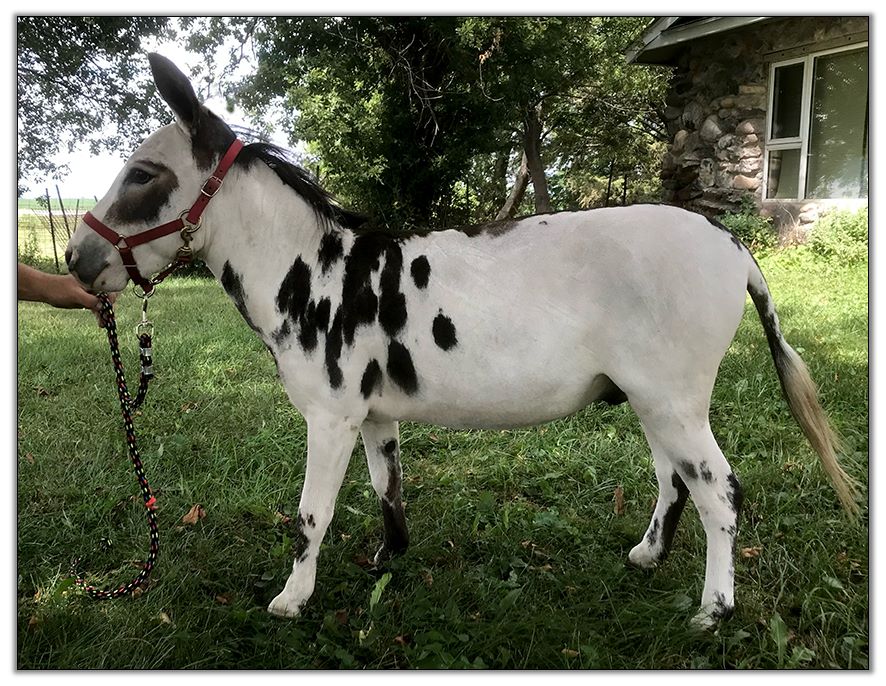 This is one of the quietest jacks on the farm. He was out on a breeding lease and got the job done without any fanfare. Pasture breeds and has had foals run with him. He is their favorite playmate. His color should work well into almost any breeding program. He has no visible shoulder stripe.